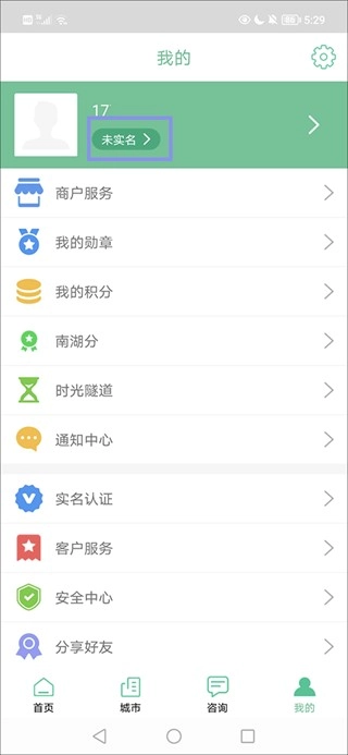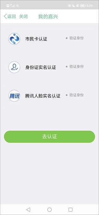 2、在我的嘉兴界面找到并点击“去认证”选项;