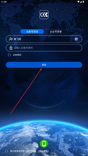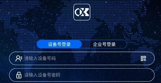 1、进入欧克物联后,输入自己的设备号码和密码进行登录;