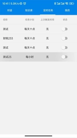 1、财税百事通不仅具备强大的对话功能,还向用户供应了丰富的知识库以及定时任务管理服务。