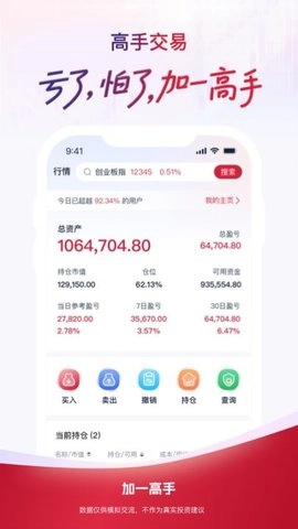 加一高手是一款专门为股民打造的手机炒股平台。它运用机器学习技术,对万亿级别的历史交易数据进行分析,从而为具有不同风险偏好的投资者,提供个性化的操作建议。不仅如此,该平台还接入了50多家券商,股民能够一键跟单顶级交易员的实盘操作。平台独创的“胜率回溯”系统,使得每一条建议都有可验证的历史表现作为支撑,助力散户打破信息差的壁垒。