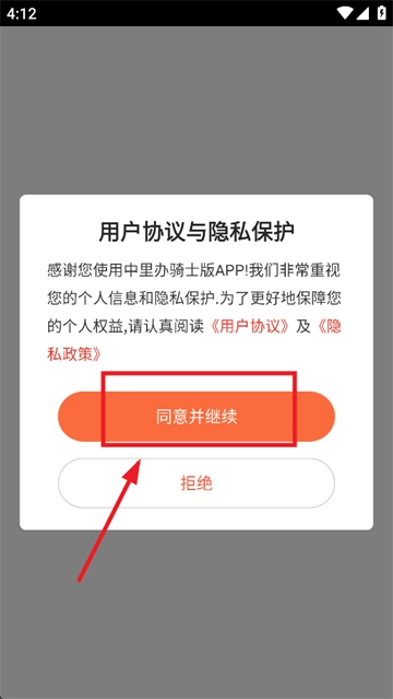 安装并打开中里办骑士版,首先查看用户协议与隐私保护。