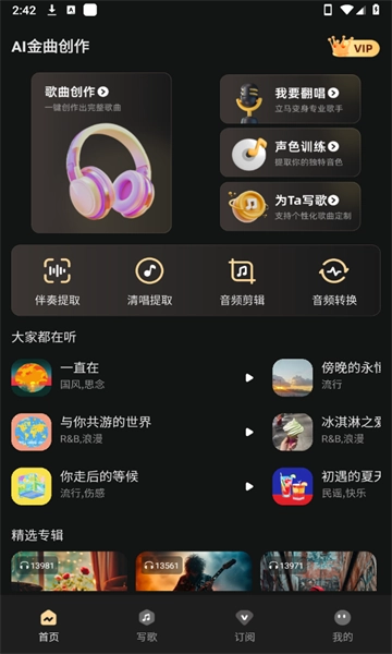 我们为您准备了丰富多样的创作模式,任您自由挑选,像AI歌词创作模式、自由创作模式皆是其中选项。