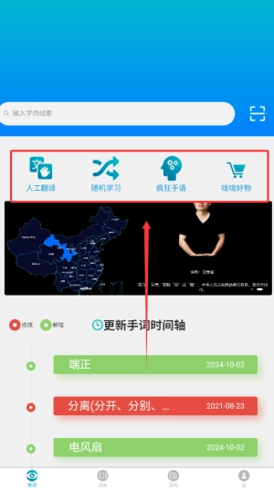 2. 极为强大的搜索引擎,能够依据关键字进行查询,帮助用户快速知晓某个词的手语表达方式。