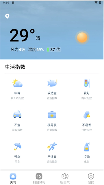 3、界面简洁美观,让用户能够快速了解天气情况,无需翻阅繁琐的气象信息。