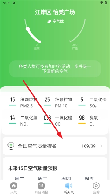 3,点击听天气功能,然后点击全国空气质量排行