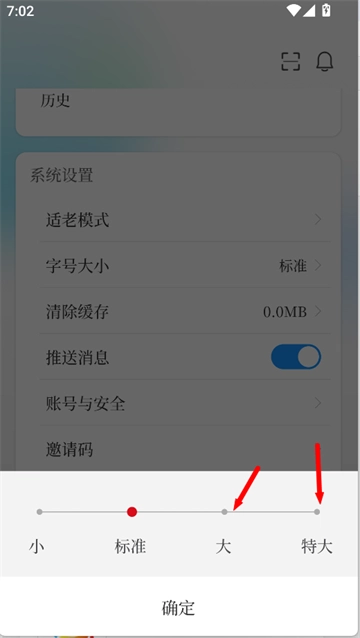 3、老年人可选择“大”或“特大”字号便于阅读。