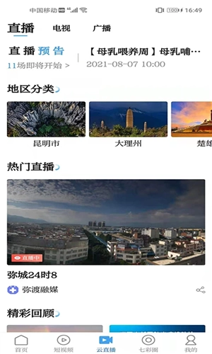 8、云南省、州、县新闻电视节目实时观看、回看。