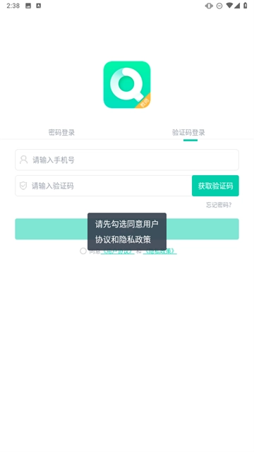 3、在登录之前,必须勾选【用户协议】与【隐私政策】,若未勾选则会触发提示,致使无法完成登录操作。
