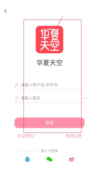 2、于【华夏天空】登录页面,填写用户名或手机号、密码,以完成账号登录。