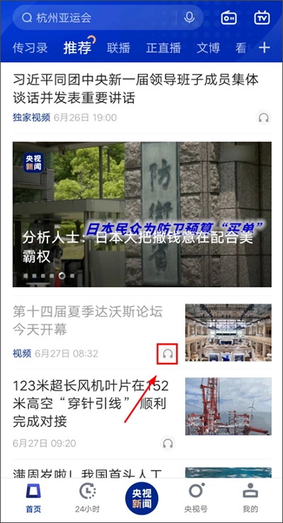 1. 开启《新闻联播》,在首页找到自己想听新闻的标题,点击其旁边的耳机图标就行。