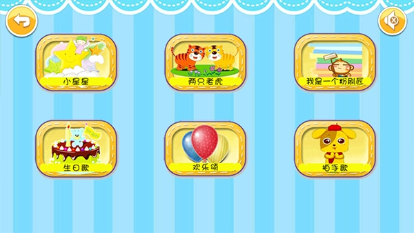 3、挑选一首儿歌,点击即可播放。在播放的同时,还能够点击页面上的琴键,自行学习乐谱。