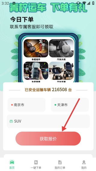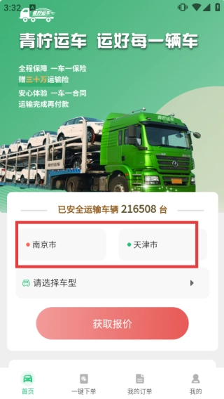 3、完成选择后,点击【获取报价】按钮,查询车辆运输报价。