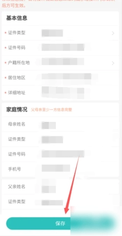 进入信息补充页面,修改儿童信息,点击底部【保存】即可。