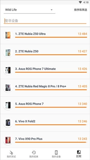 5、此外,用户能够查看其他手机的跑分情况,并加以比较。