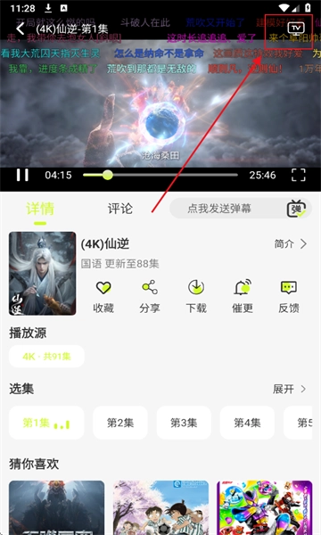 3、进入,点击右上方小电视。