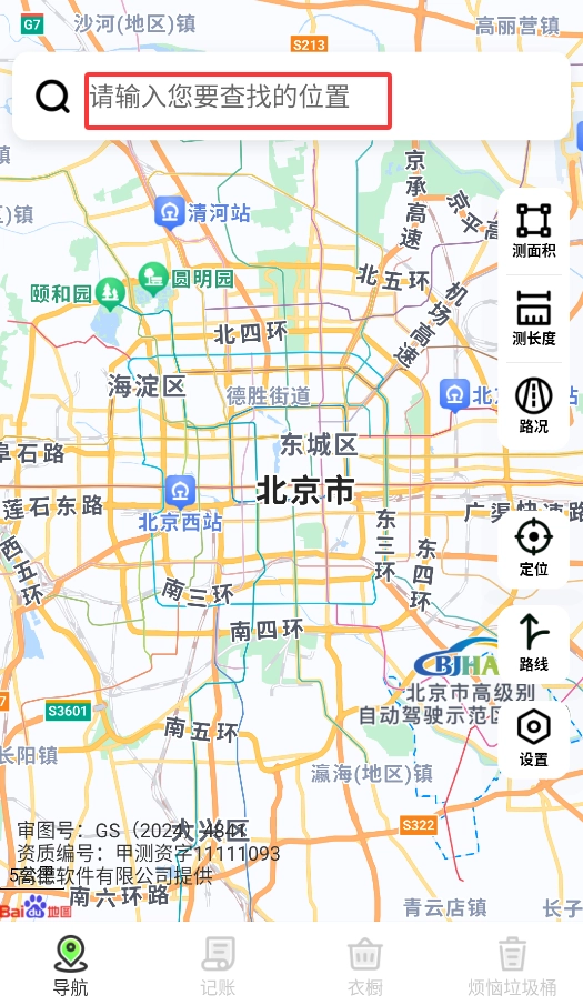 2、长按地图任意位置可快速测距,拖动测量线实时显示路径长度和预估通行时间。