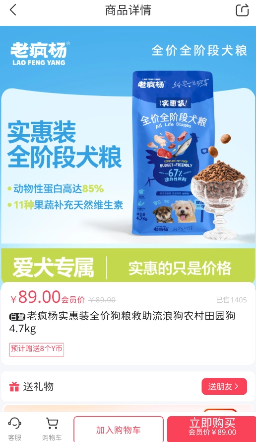 2、会员积分体系:创新的Y币奖励机制,购物、互动均可累积积分,兑换专属宠物用品。