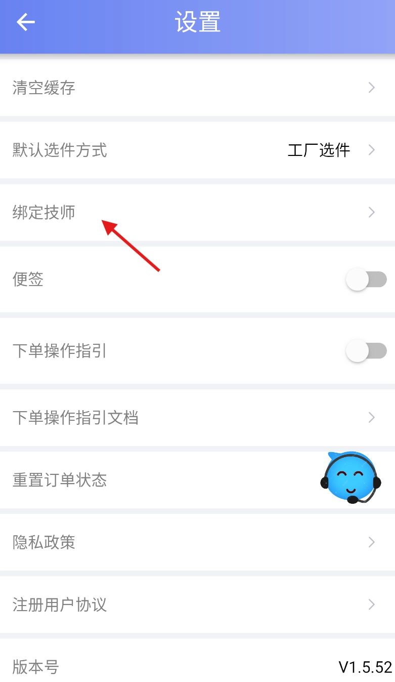3、在设置页面内,找到与人员关联相关的 “绑定技师” 功能选项并点击进入。