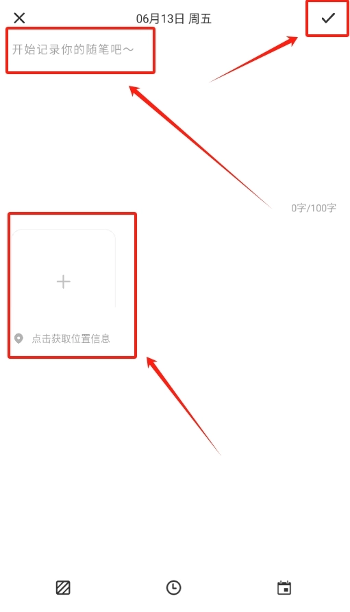 1、启动兔克日记后,在主页右上方找到那个显眼的记录按钮,轻轻一点就能开始写日记。