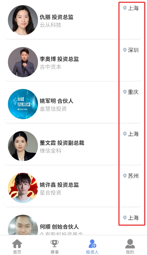 2、进入投资人专区,可按地域筛选查看全国各地的投资机构与投资人资料。