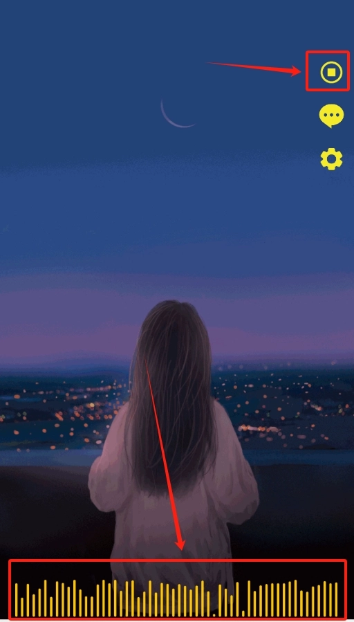 1、打开昼夜助眠软件,进入主界面后,在屏幕右侧找到那个音符图标,轻轻点击它。