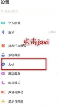 1. 进入设置,在页面上向下滑动,直到看到“Jovi”选项,接着点击该选项进入。