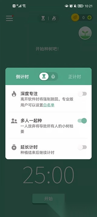 专注森林是一款能助力用户培养专注力的冥想倒计时手机应用,可安装于安卓设备,帮助提升办事时的专注度。当用户需要专心处理某事时,打开该功能并设定倒计时,便会有一棵幼苗破土而出。在此期间,若触碰手机,树苗就会枯萎;反之,树苗则会长成参天大树,成为森林的一部分。