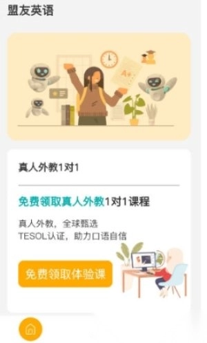 盟友英语作为初学者学习之路上不可或缺的学习软件,它能为你提供真人外教一对一教学服务,让你以最轻松自然的方式练习英语,从此告别乏味无聊的死记硬背,在短时间内迅速提升英语水平,丰富知识储备。它摒弃了传统教学理念,采用更为开放式的互动学习模式,让你在不知不觉中完成各类课程练习,养成良好且规律的学习习惯。