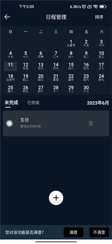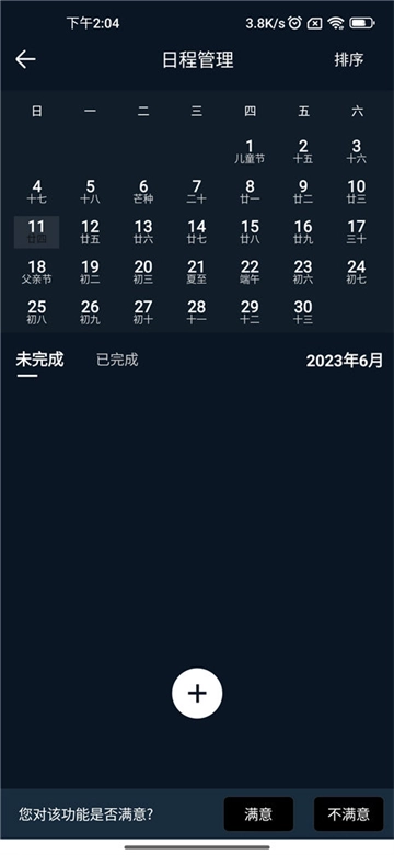 2. 打开日程管理界面,点击底部的“+”号按钮。
