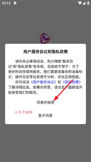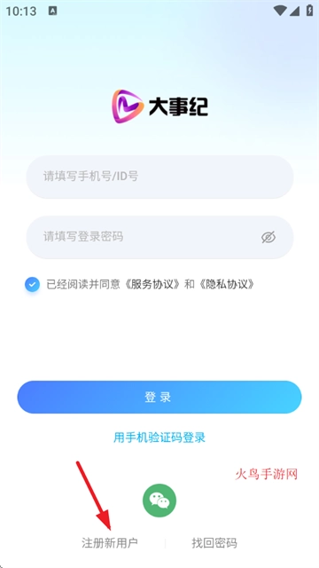 1. 第一步,打开大事纪,接着阅读并同意“用户服务协议和隐私政策”。