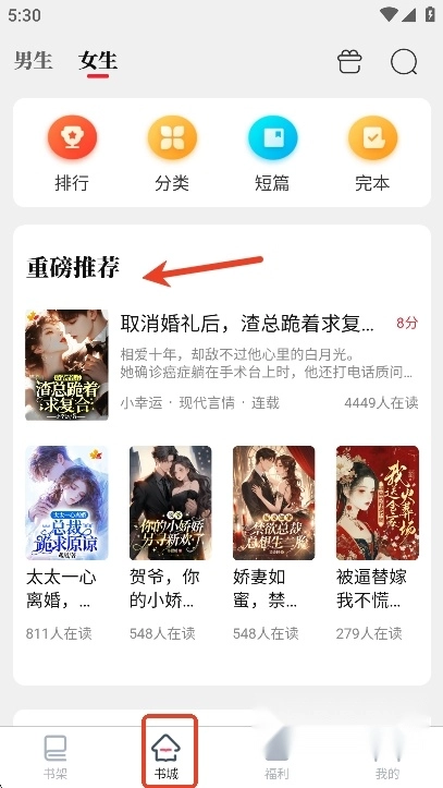 打开,用户们可以在书城页面推荐板块挑选最新最热门的小说