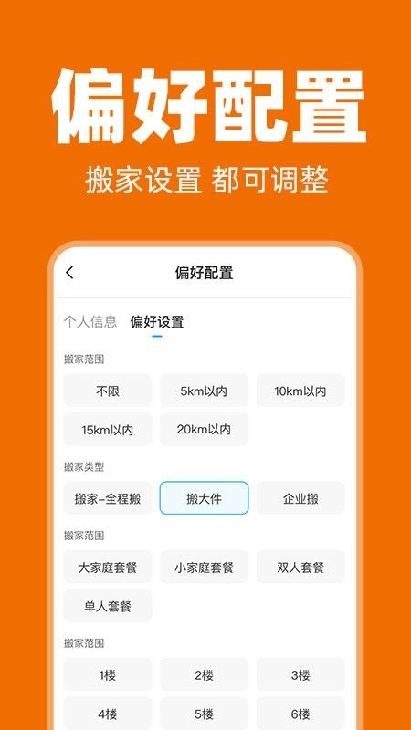 还可以让你实时进行偏好设置,便捷设置调整接单偏好,一键实现搬家设置。