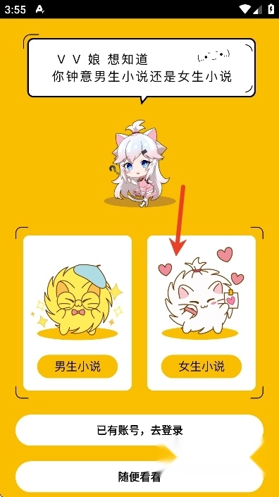 打开,用户们可以选择阅读喜好,是男频小说还是女频小说