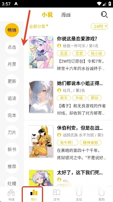 用户们也可以根据小说排行榜来筛选出自己喜欢的小说资源