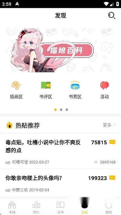 社区互动功能丰富多样:其一为弹幕系统,用户在阅读过程中能够发送吐槽弹幕,从而与其他读者展开实时互动。其二设有“发现”板块,该板块涵盖热门帖、书评区、书荒区等多个分区。在这里,用户可以发布帖子讨论剧情,分享个人的阅读心得,还能关注同好的动态,进而营造出活跃的二次元社区氛围。