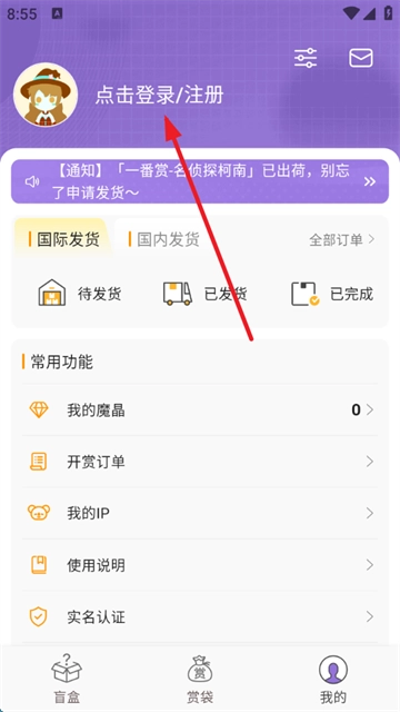 2、点击头像进行登录注册;