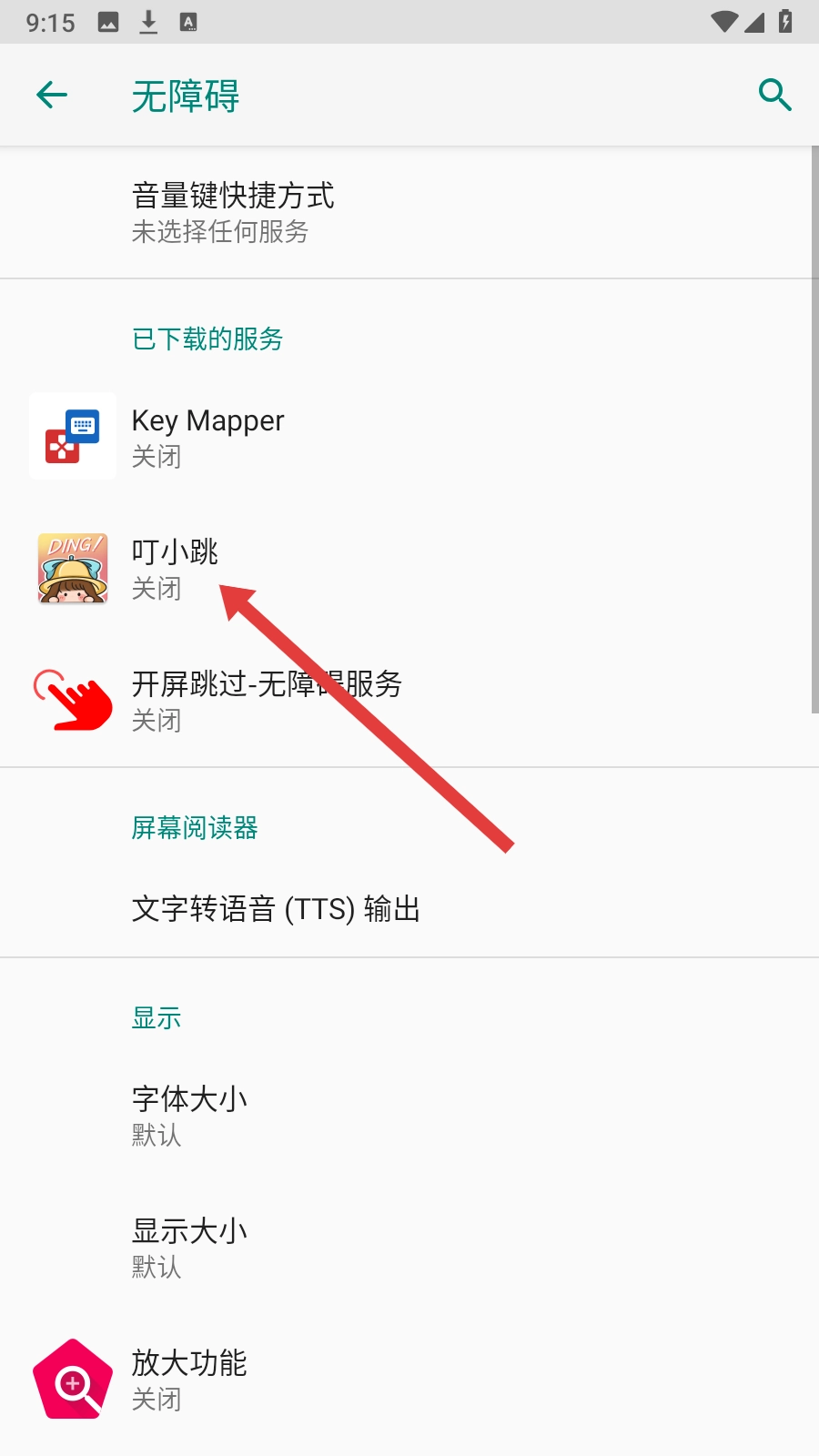 3、在无障碍设置页面找到【叮小跳】,点击进入服务设置页面。