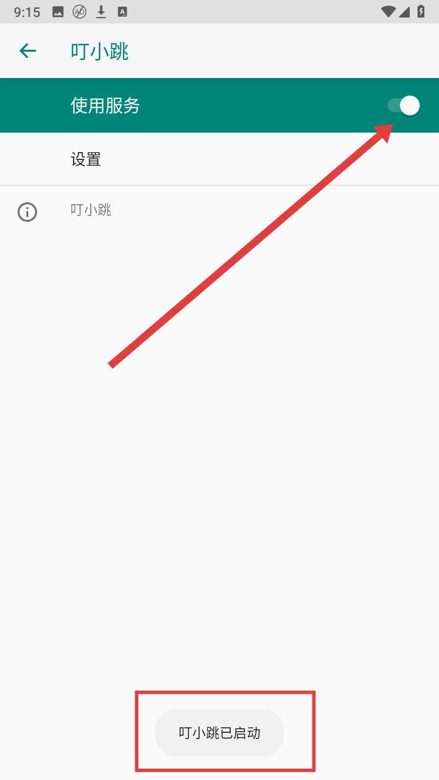 4、在服务设置页面开启【使用服务】,完成权限设置即可开启叮小跳。
