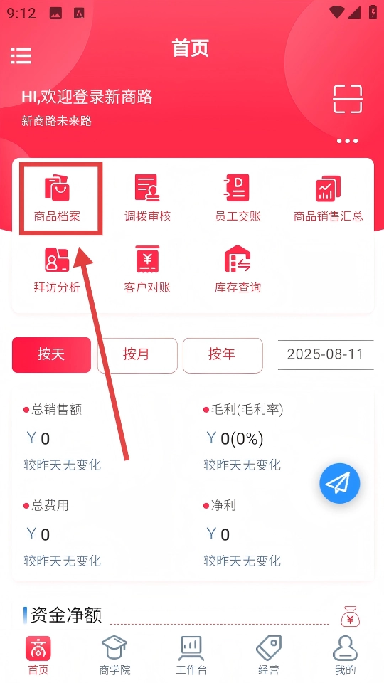 1、在新商路首页点击【商品档案】进入商品列表页。