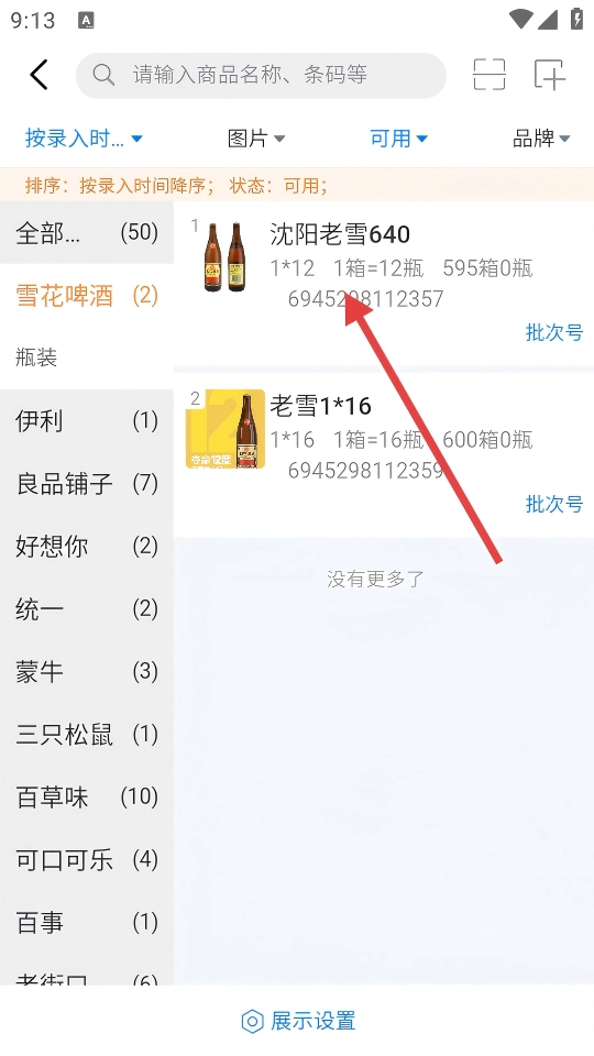 2、在商品列表中点击【沈阳老雪640】商品条目进入详情页。