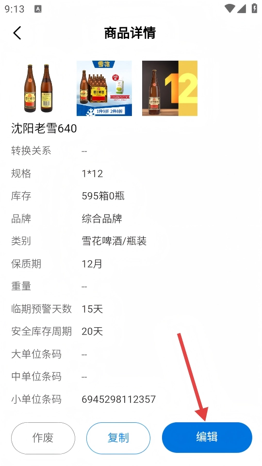 3、在商品详情页点击底部【编辑】按钮进入编辑页。