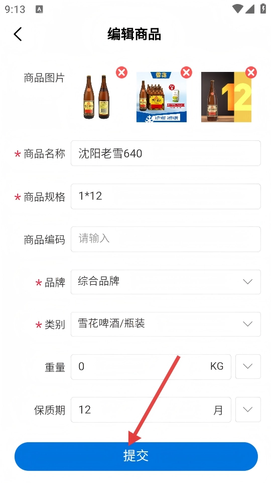 4、在编辑商品页完善信息后点击【提交】按钮完成修改。