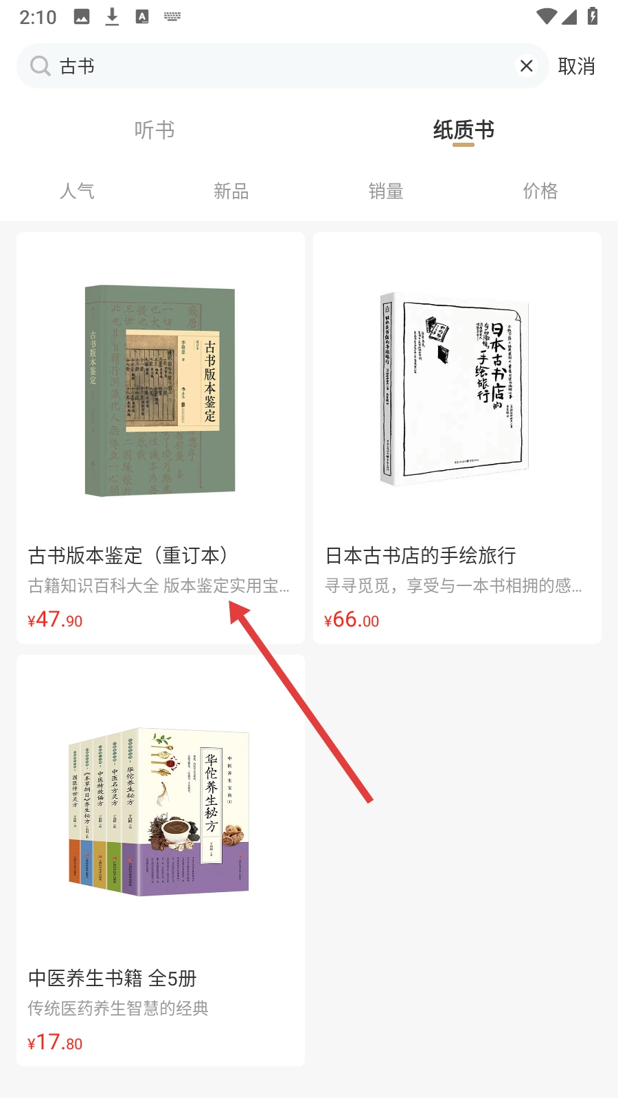 2、在书城搜索栏输入【古书】,查找相关书籍。