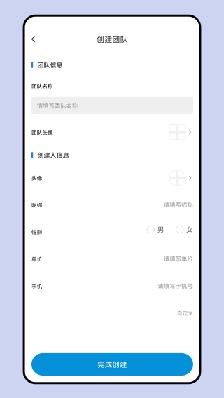 1. 可自定义编辑团队名称、头像、创建人信息及单价等内容,团队创建完成后便于管理。