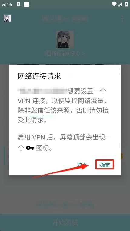 5、在底部点击“最先测试”后,会弹出一个网络连接请求,点击“确定”即可开启测试。