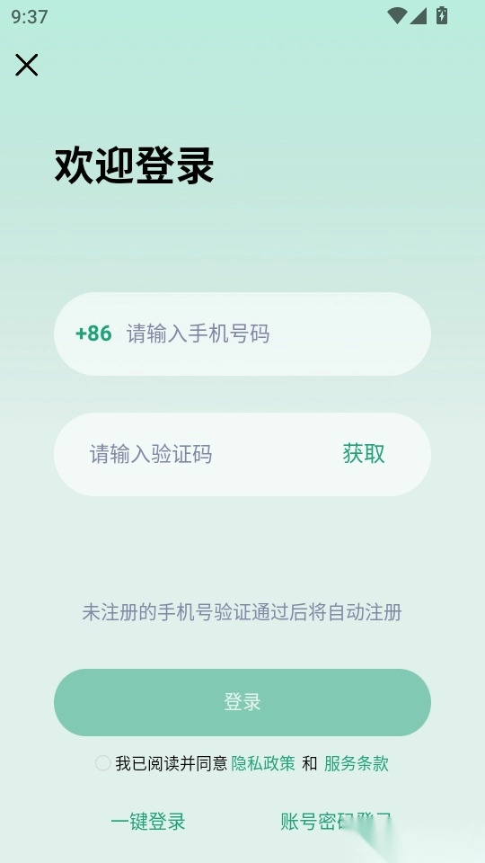 1.首先大家需要进行账号登入,输入手机号和验证码就可以自动注册