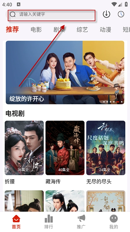2. 轻点首页的搜索栏,输入相关关键词,接着从搜索结果里挑选对应的影片。