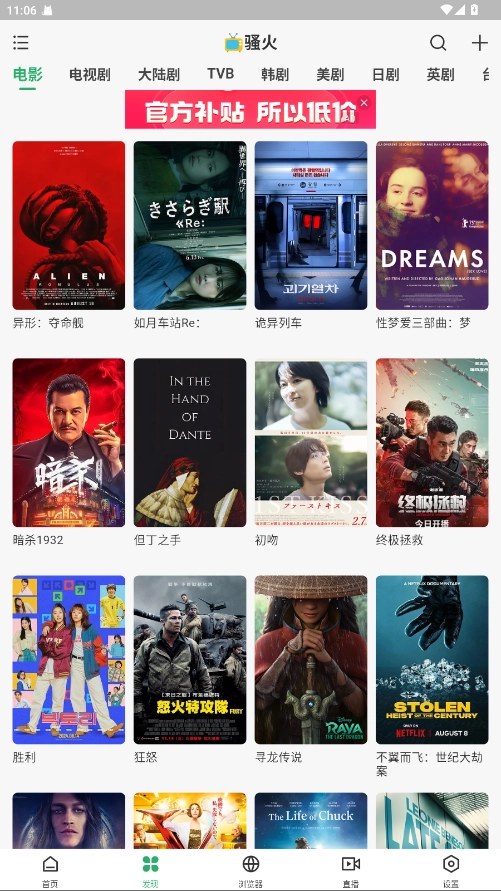 7、回到主页的发现栏,就可以开始阅读和观影啦。