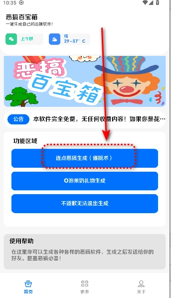 恶搞百宝箱为您呈上丰富多样的整蛊工具。在此,用户能够生成妙趣横生的整蛊程序,依照自身需求在线编辑。众多充满创意的整蛊程序可轻松生成,助力用户更出色地打造各类恶作剧。用户还能随时将这些成果分享给好友,实现更优质的在线互动交流。