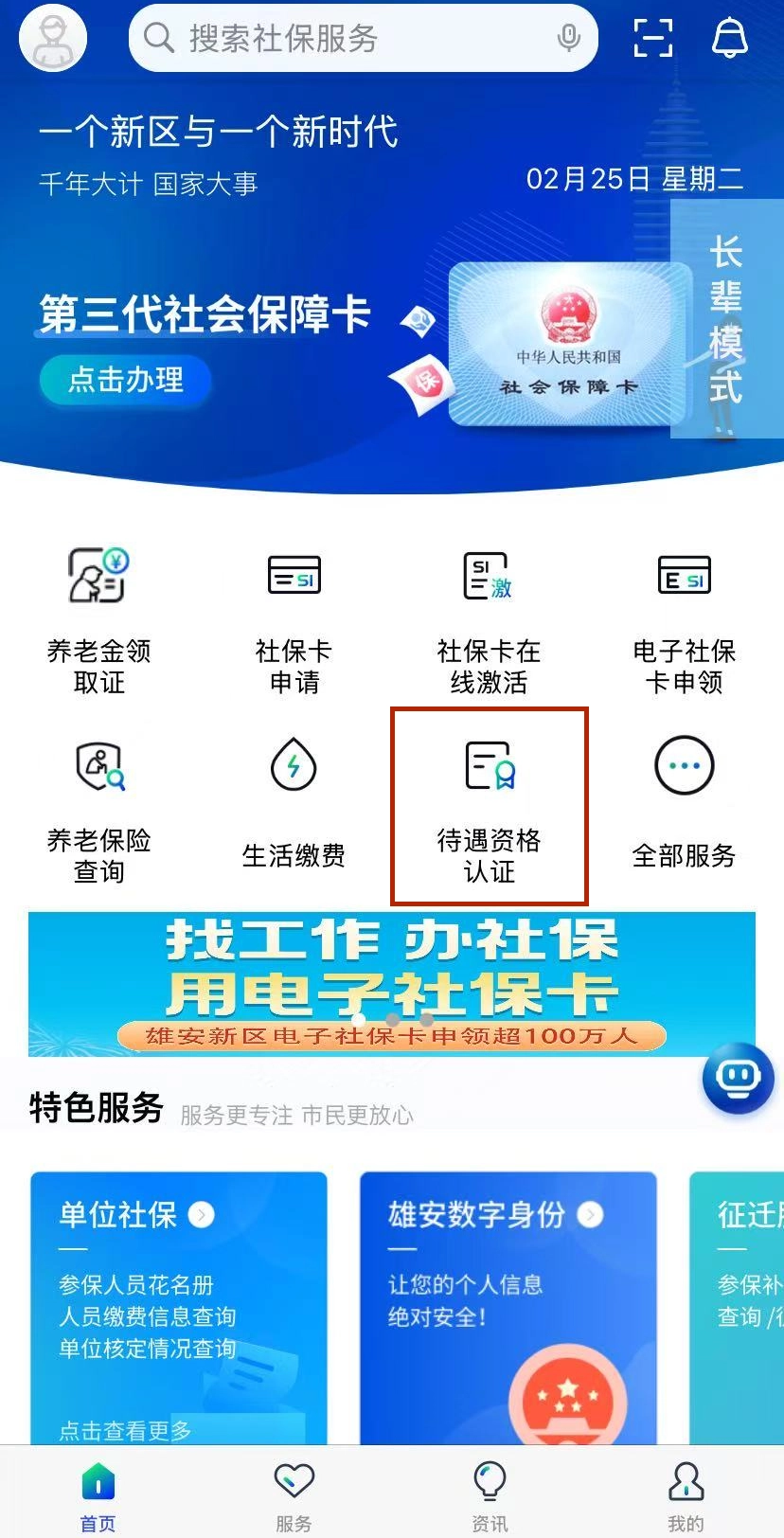 接下来进行第二步操作:在首页找到并点击“待遇资格认证”。随后,从“本人资格认证”与“为他人资格认证”这两个选项中做出选择。